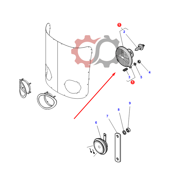 Lampa przednia z płytą montażową